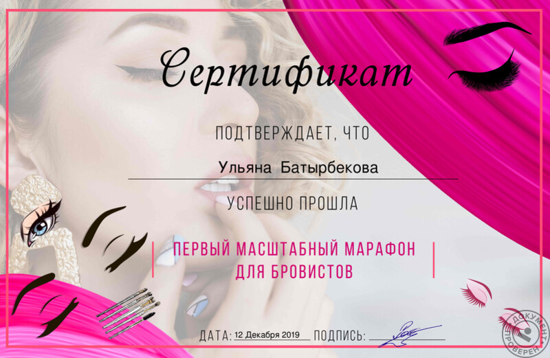 - Студия красоты, мастер-бровист, 2019 г.