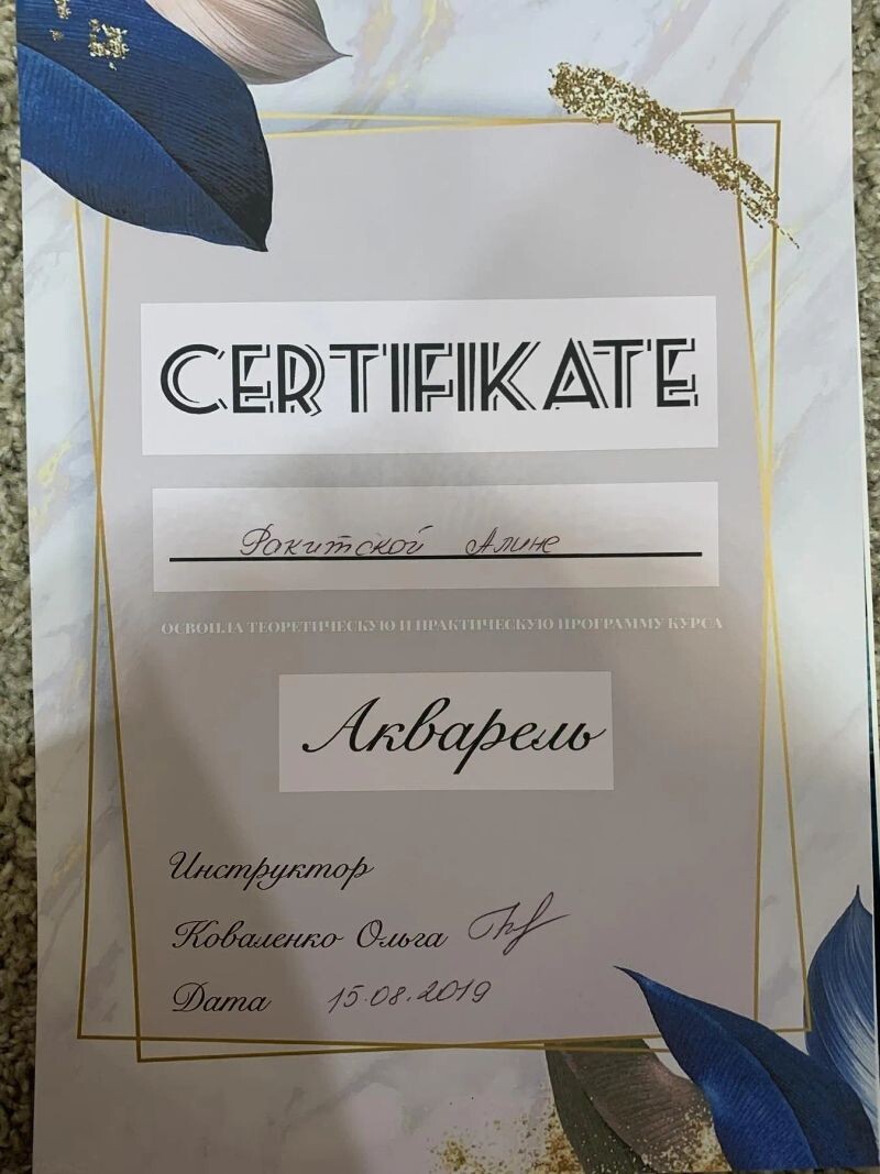 - Дизайн рисования, курс «Акварель», 2019 г.