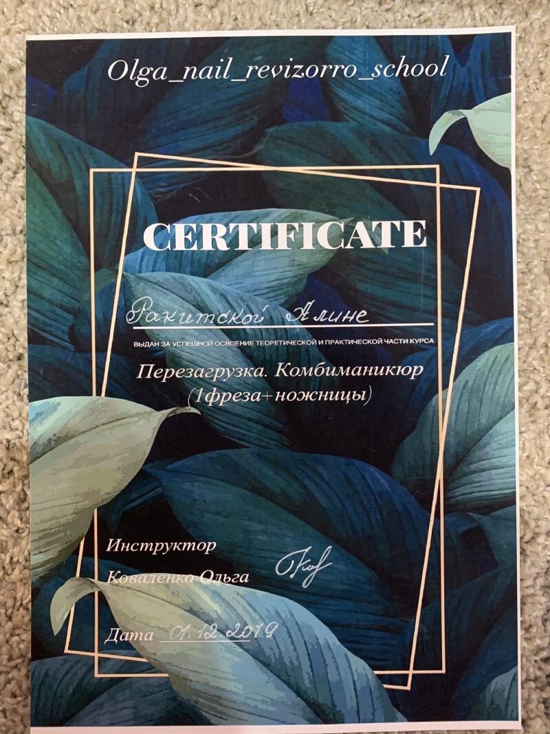- Курс повышения квалификации «КОМБИ Маникюр & Гель-лак», 2019 г.