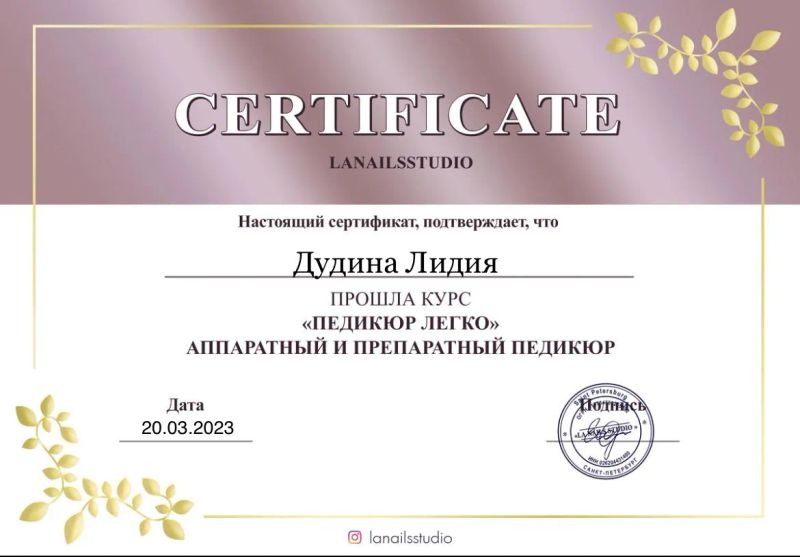 - LANAILSSTUDIO, курс аппаратного и препаратного педикюра «Педикюр легко», 2023 г.