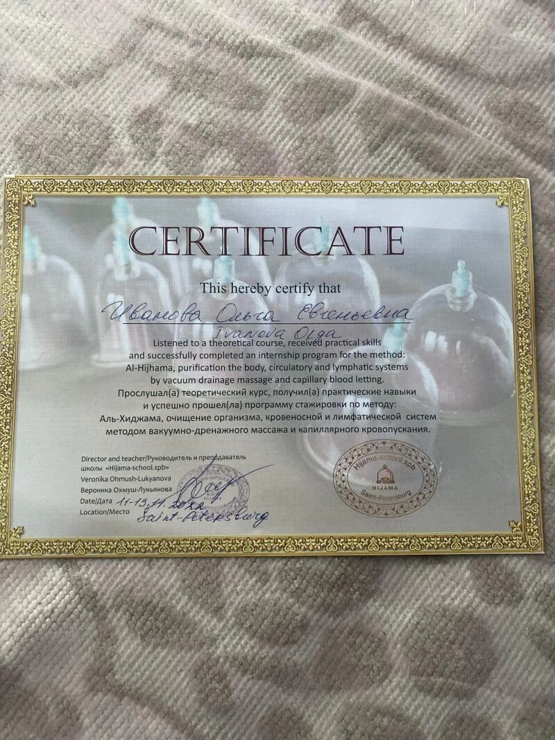 - Ніјата-school, Аль-Хиджама, очищение организма, кровеносной и лимфатической систем методом вакуумно-дренажного массажа и капиллярного кровопускания, 2022 г.