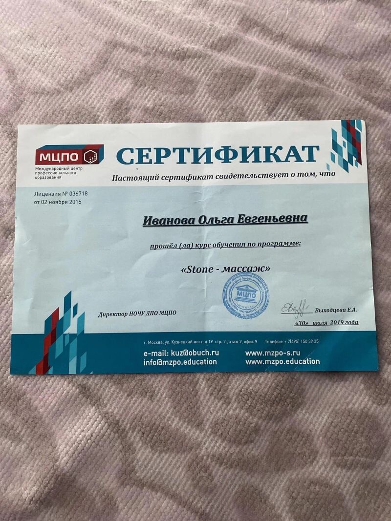 - МЦПО, программа «Стоун массаж», 2019 г.