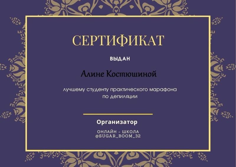 - Сертификат, практический марафон по депиляции (с 2021 г.).