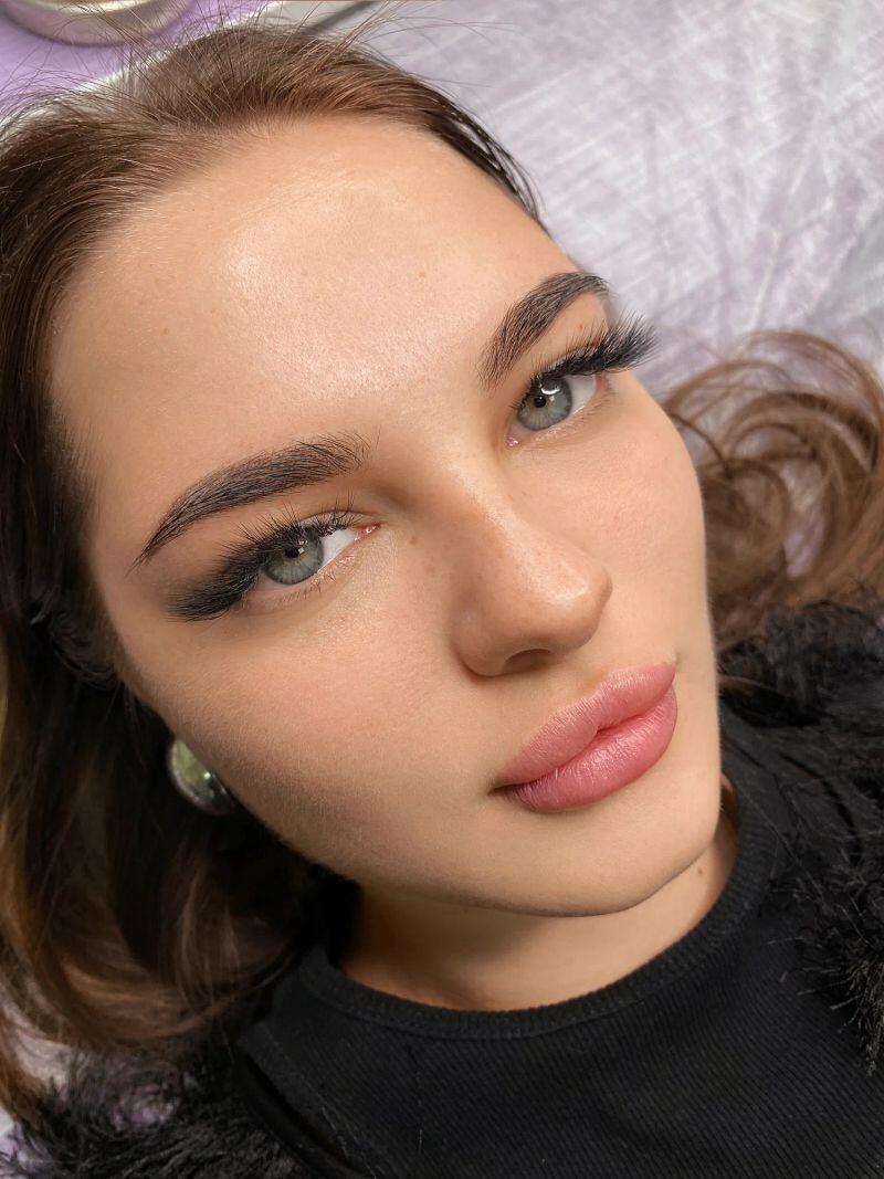 Пудровое напыление бровей, межресничный татуаж, напыление губ