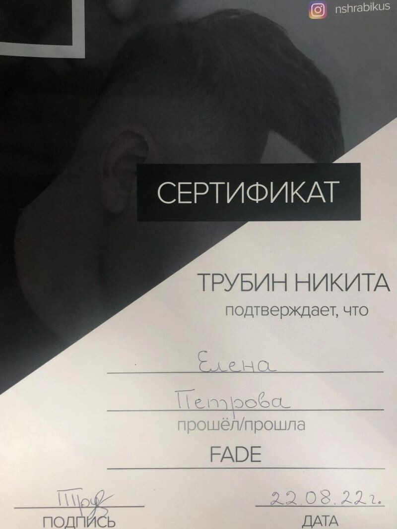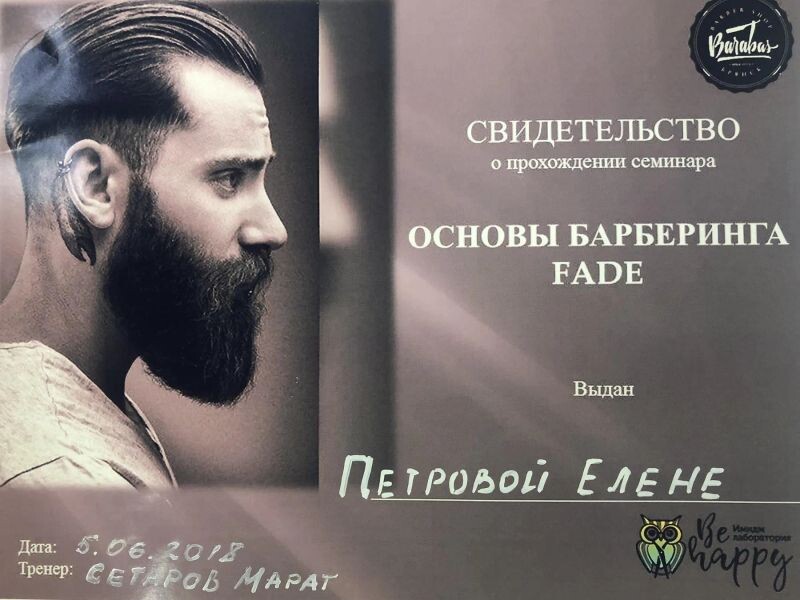 - Имидж-лаборатория Be happy, семинар «Основы барберинга FADE», 2018 г.
