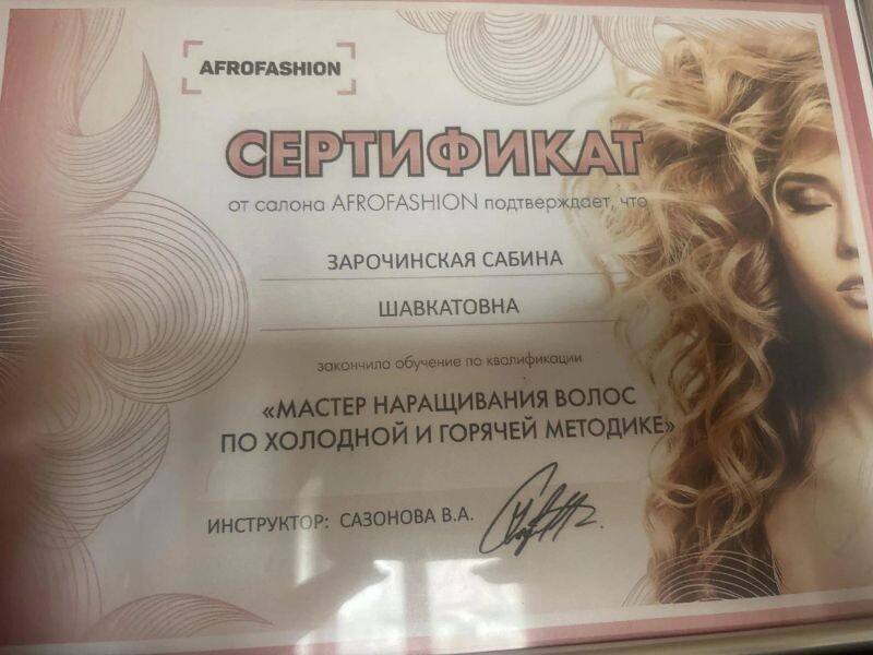 - Афрофэшн « Мастер наращивания волос по холодной и горячей методике» (с 2023 г.).