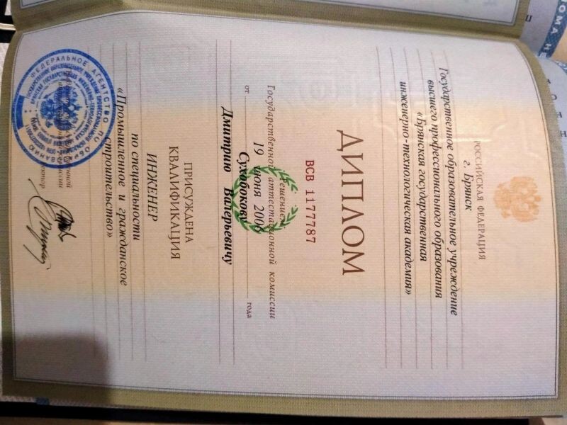 - Брянская государственная инженерно-технологическая академия, промышленное и гражданское строительство, 2001–2006 гг.
