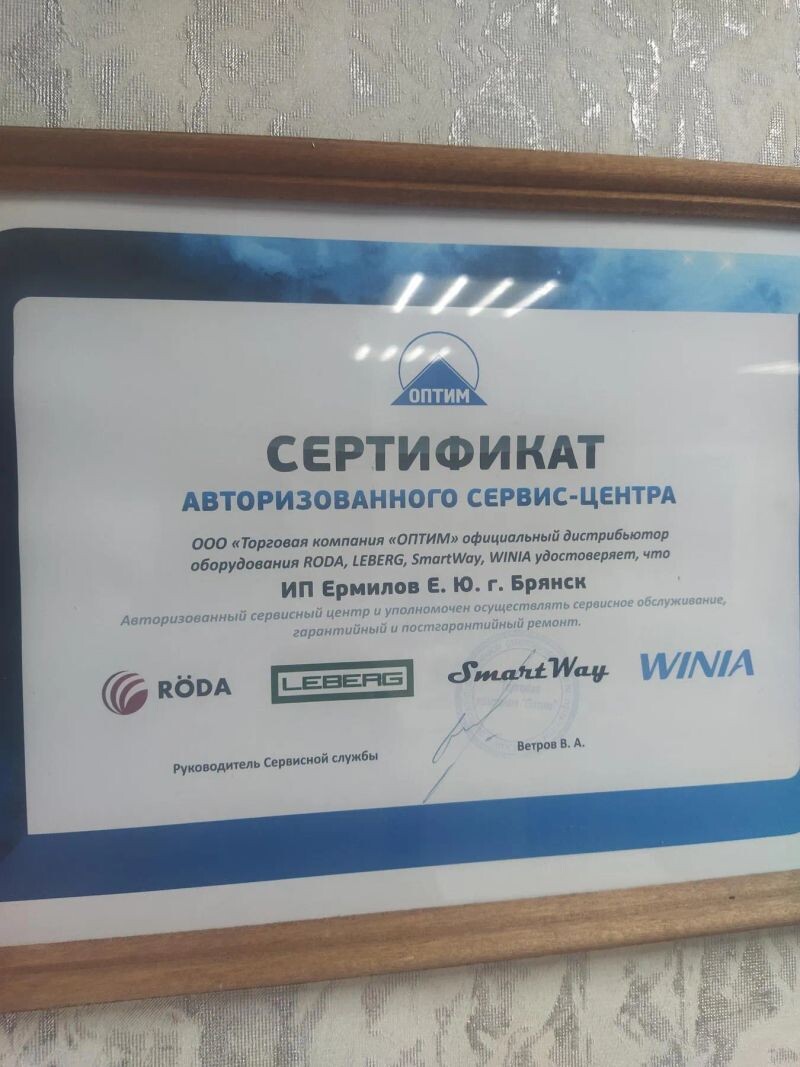 - Сертификат авторизации и сервисного центра торговой марки «Оптим», 2023 г.