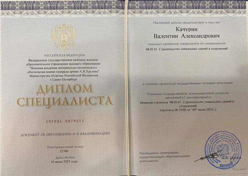 - Военная академия материально-технического обеспечения им. генерала армии А.В. Хрулева, строительство уникальных зданий и сооружений, 2017–2023 гг.