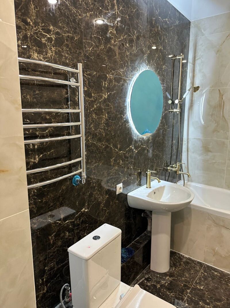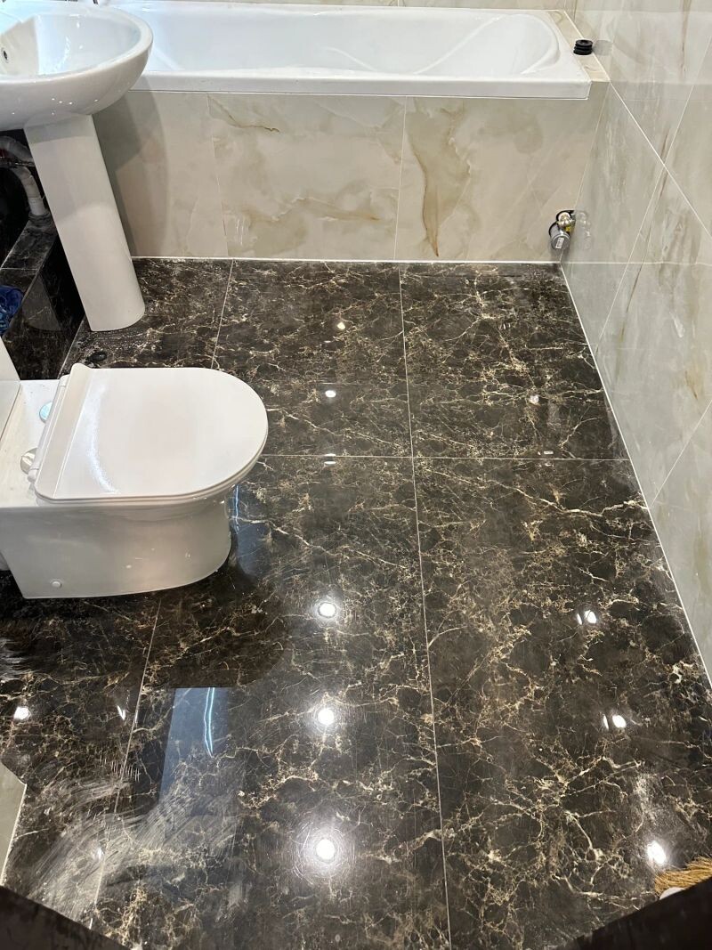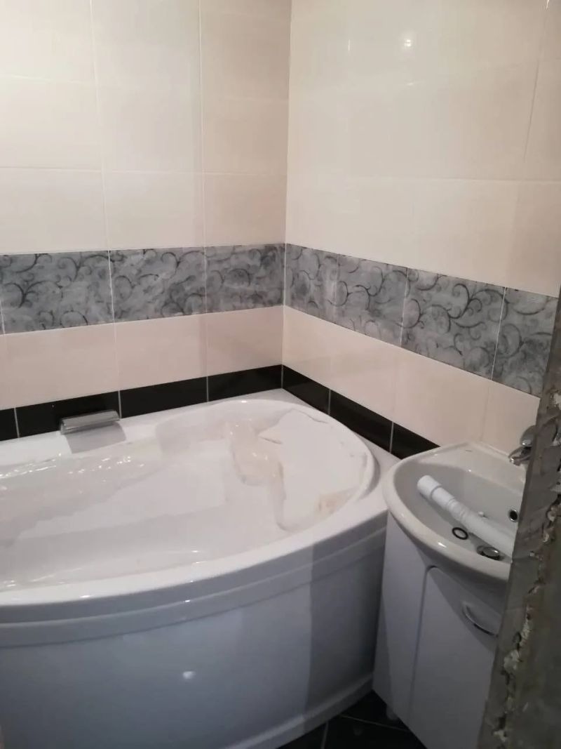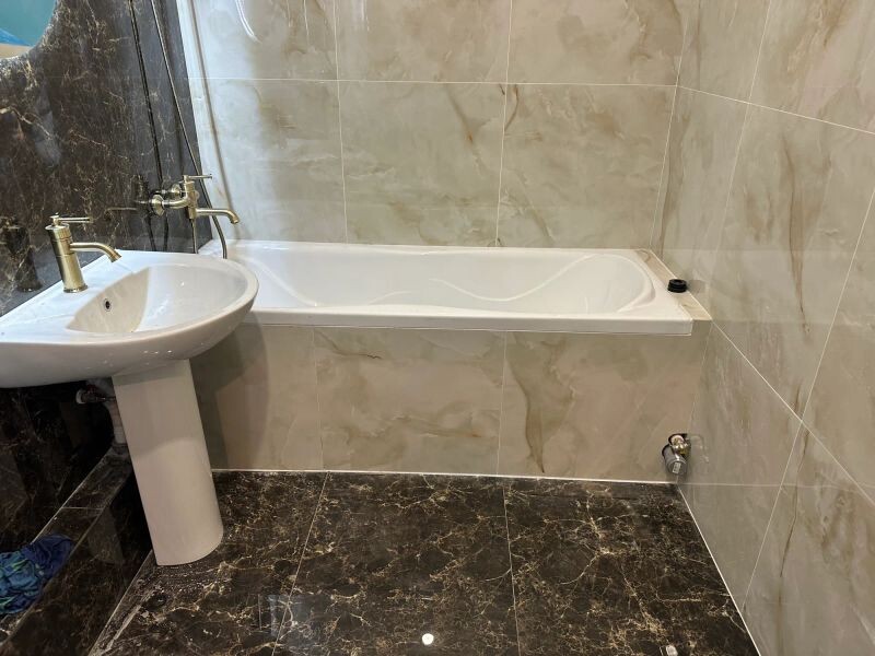 Спасибо что откликнулись на не совсем тривиальную задачу. Резка и приклейка плитки 1200х600 на мебельную конструкцию в санузле. Также была выполнена установка смесителя и накладной раковины.