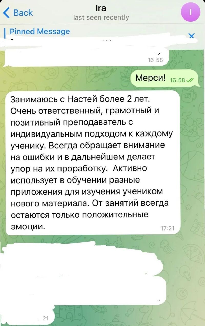 Мы уточним несколько деталей, после чего репетитор получит вашу заявку и свяжется с вами для уточнения деталей.