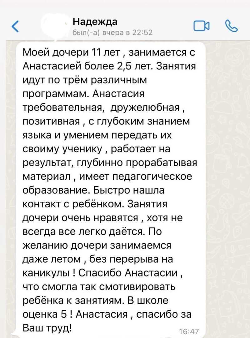 Отзывы о Александровне Пыжовой Анастасии