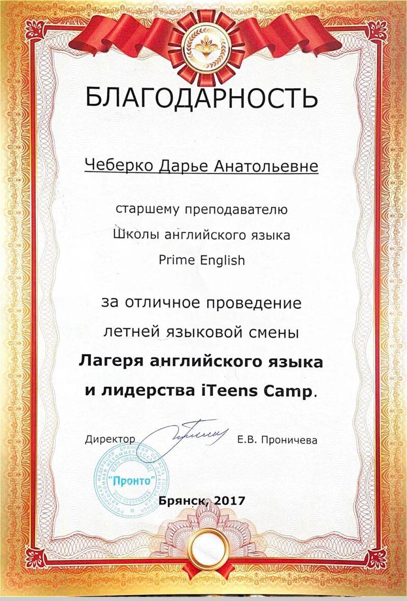 - БГУ им. академика И.Г. Петровского, повышение квалификации по программе «Подготовка преподавателя-консультанта к формированию у учащихся образовательных учреждений знаний, умений и навыков для сдачи ЕГЭ по английскому языку», 2017 г.