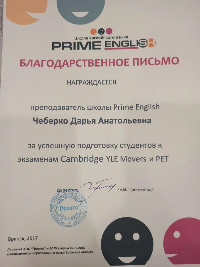 - Cambridge English Certificate Level 2 (Advanced), 2017 г.