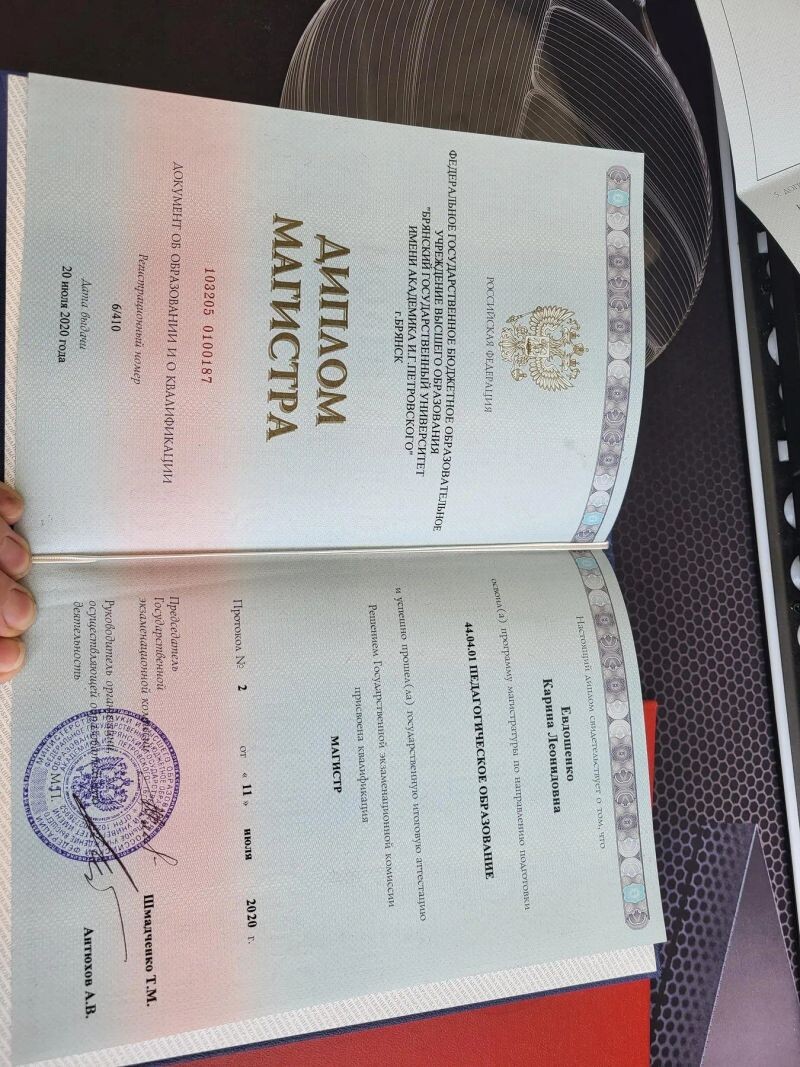 - Диплом магистра. 44.04.01 педагогическое образование (с 2018 г.).