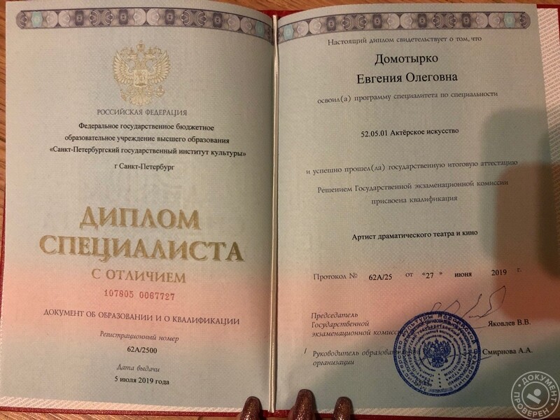- СПбГИК, мастерская М.И. Самочко, актёрское искусство, артист драматического театра и кино, 2015–2019 гг.