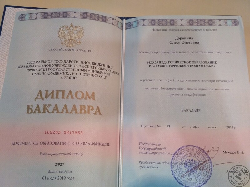 - БГУ им. академика И.Г. Петровского, филологический факультет, учитель русского и литературы, 2014–2019 гг.