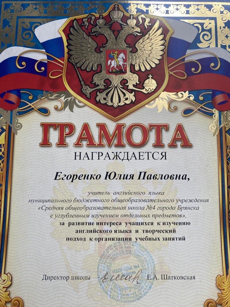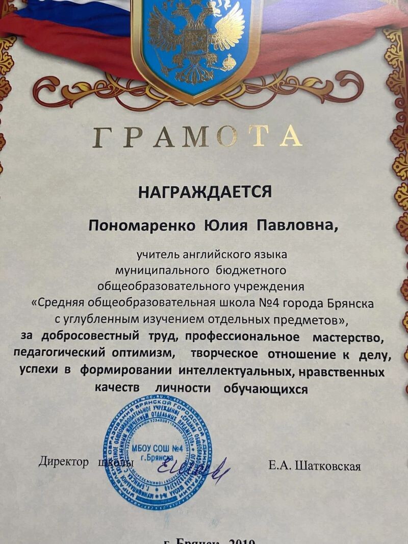 - МБОУ СОШ № 4, грамота, 2010 г.