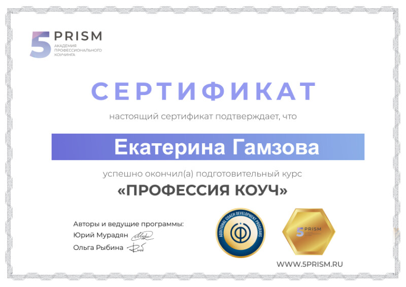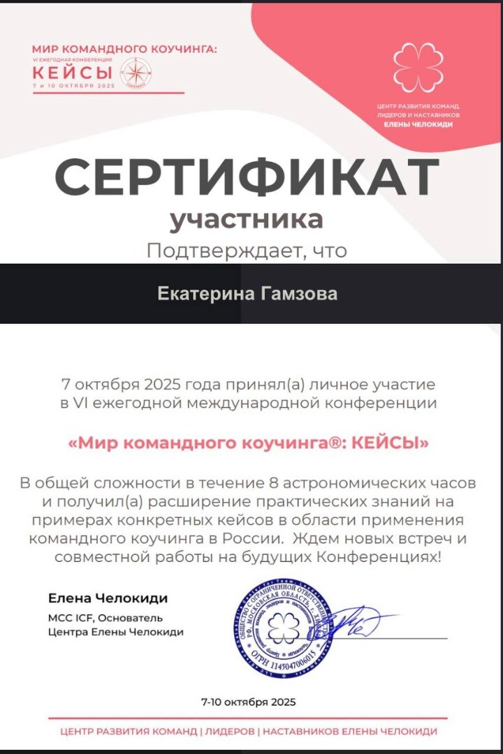 - Прошла более 570 часов обучения психологии и коучингу с практической отработкой и тестированием техник, что позволяет мне быстро выявлять и решать проблемы коммуникации.