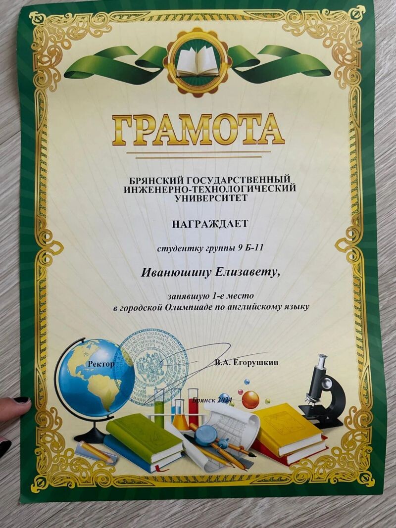 - Городская олимпиада по Английскому языку,БГИТУ (с 2024 г.).