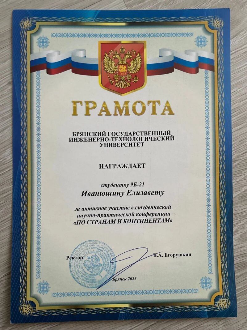 - Участие в студенческой научно-практической конференции «по странам и континентам» (с 2025 г.).