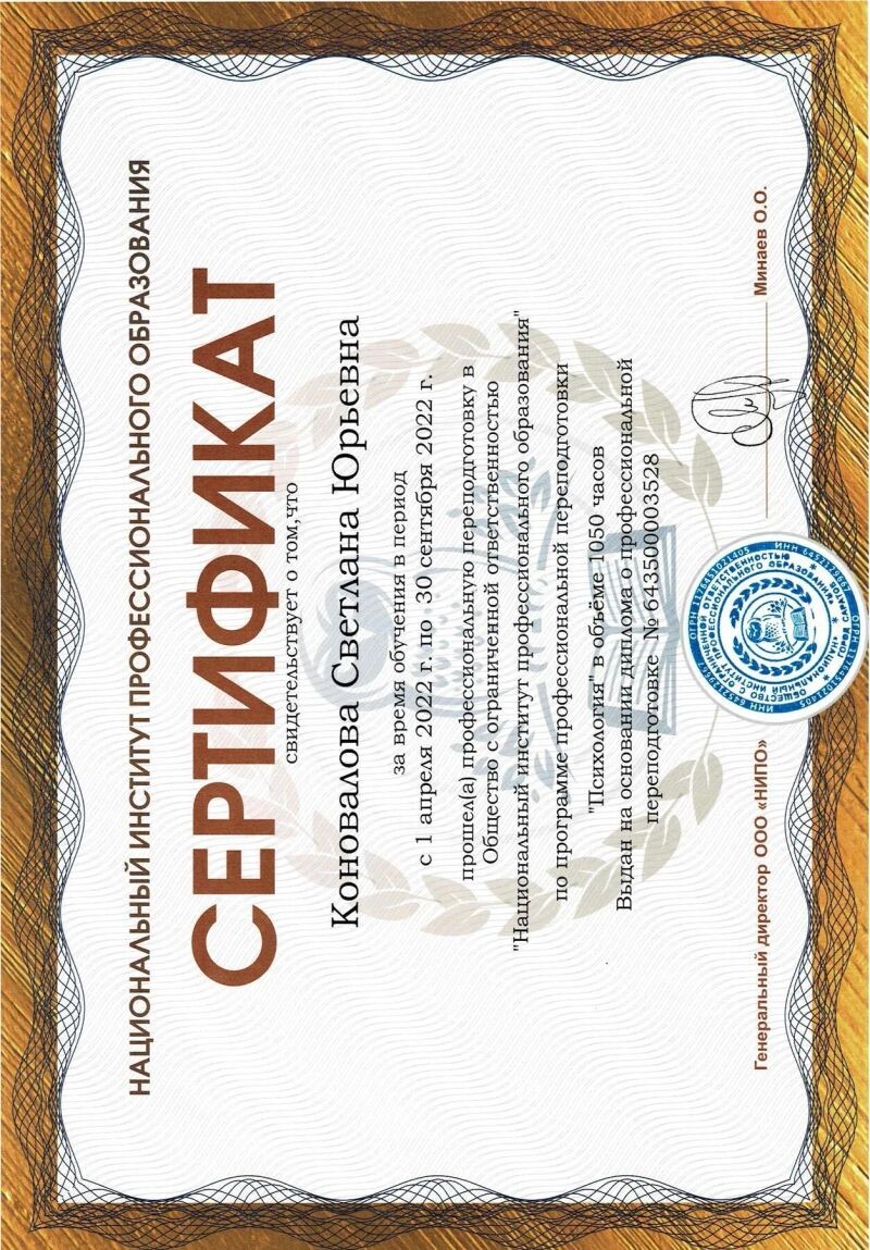 - Национальный институт профессионального образования, психолог, 2022 г.