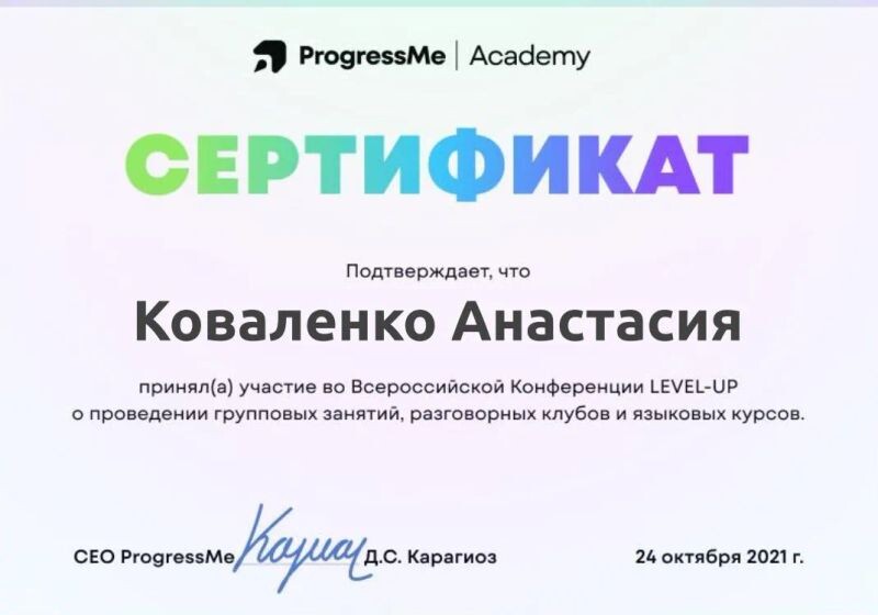 - Всероссийская конференция LEVEL-UP о проведении групповых занятий, 2021 г.