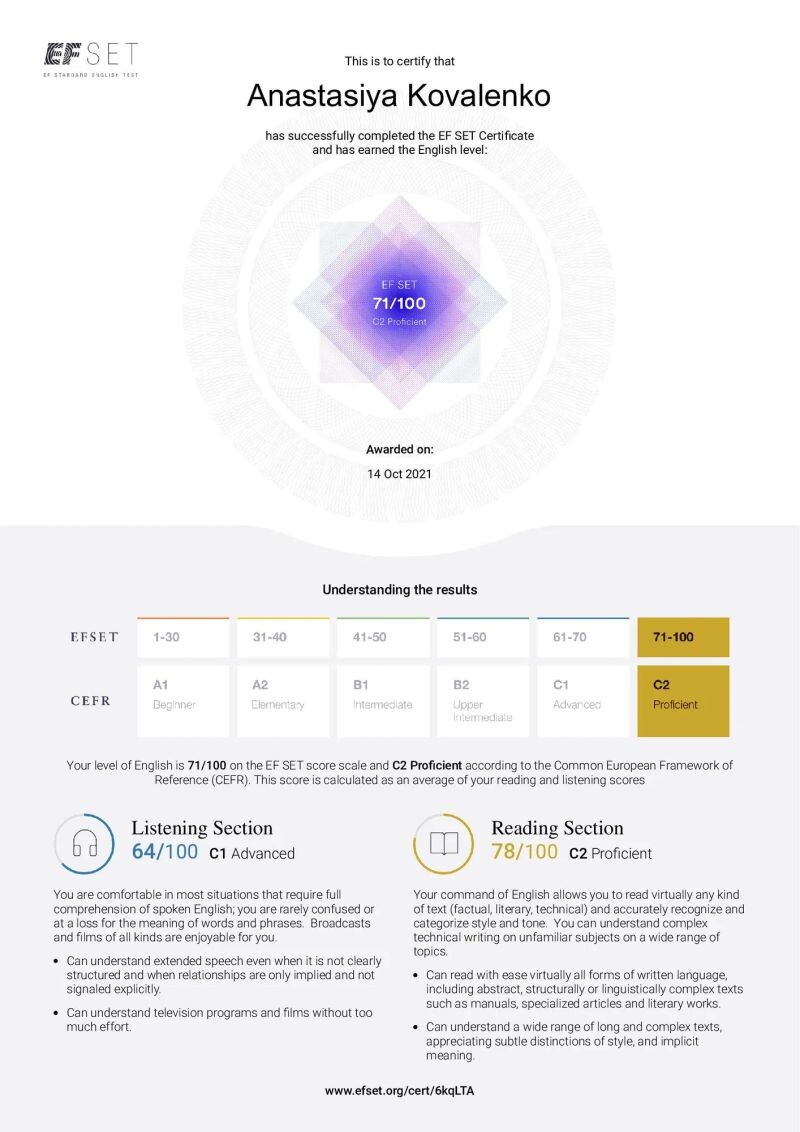 - EF SET 71/100, 2021 г.