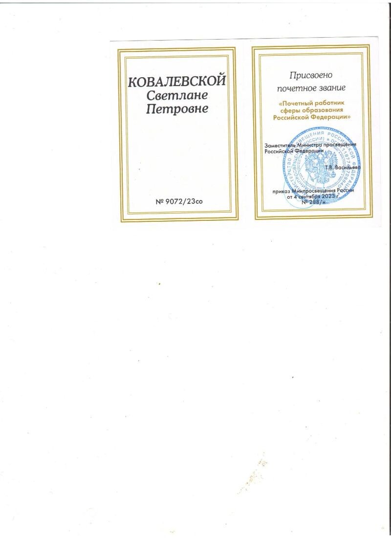 - Министерство просвещения России, почётное звание «Почётный работник сферы образования Российской Федерации», 2023 г.