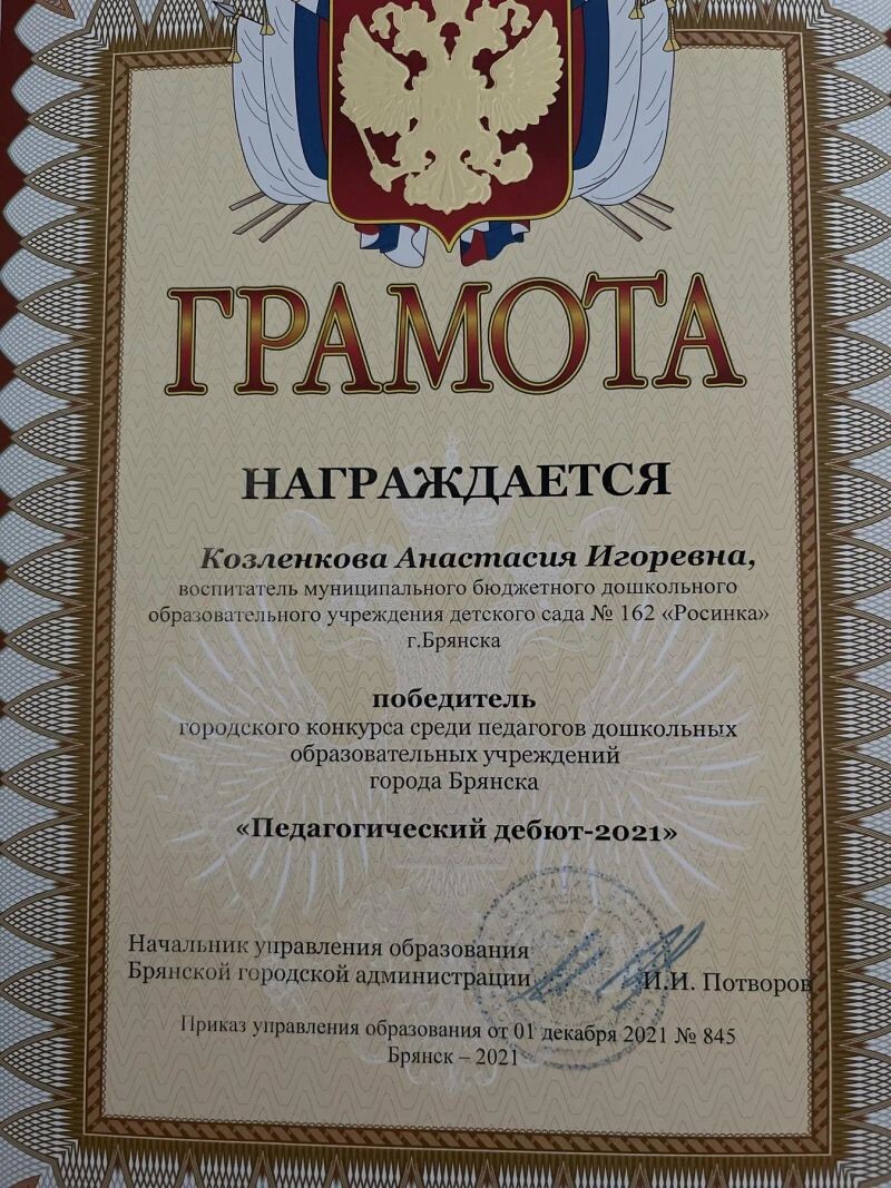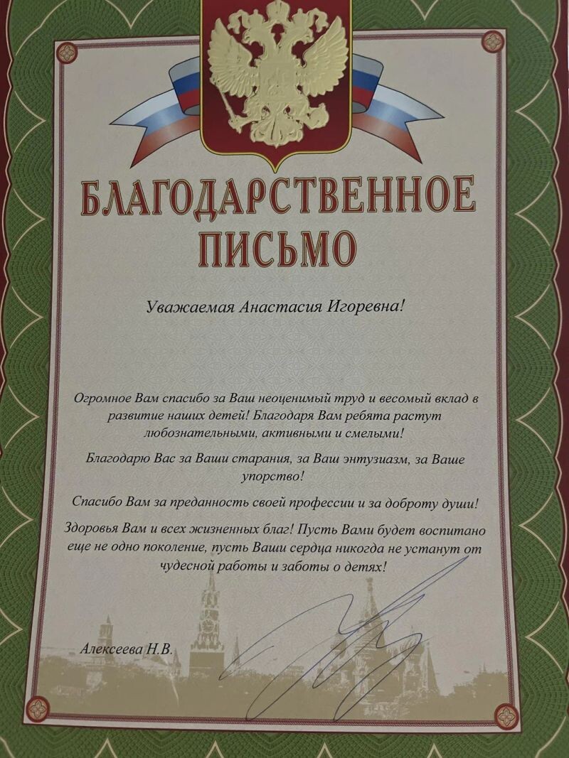 - Благодарственное письмо за неоценимый труд и весомый вклад в развитие детей, 2021 г.