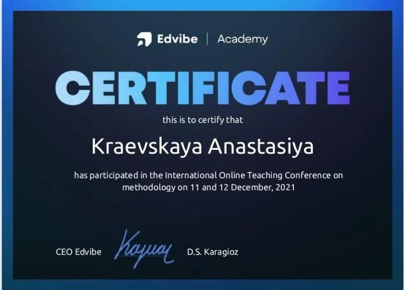 - Участник международной конференции ProgressMe по методике преподавания, 2021 г.