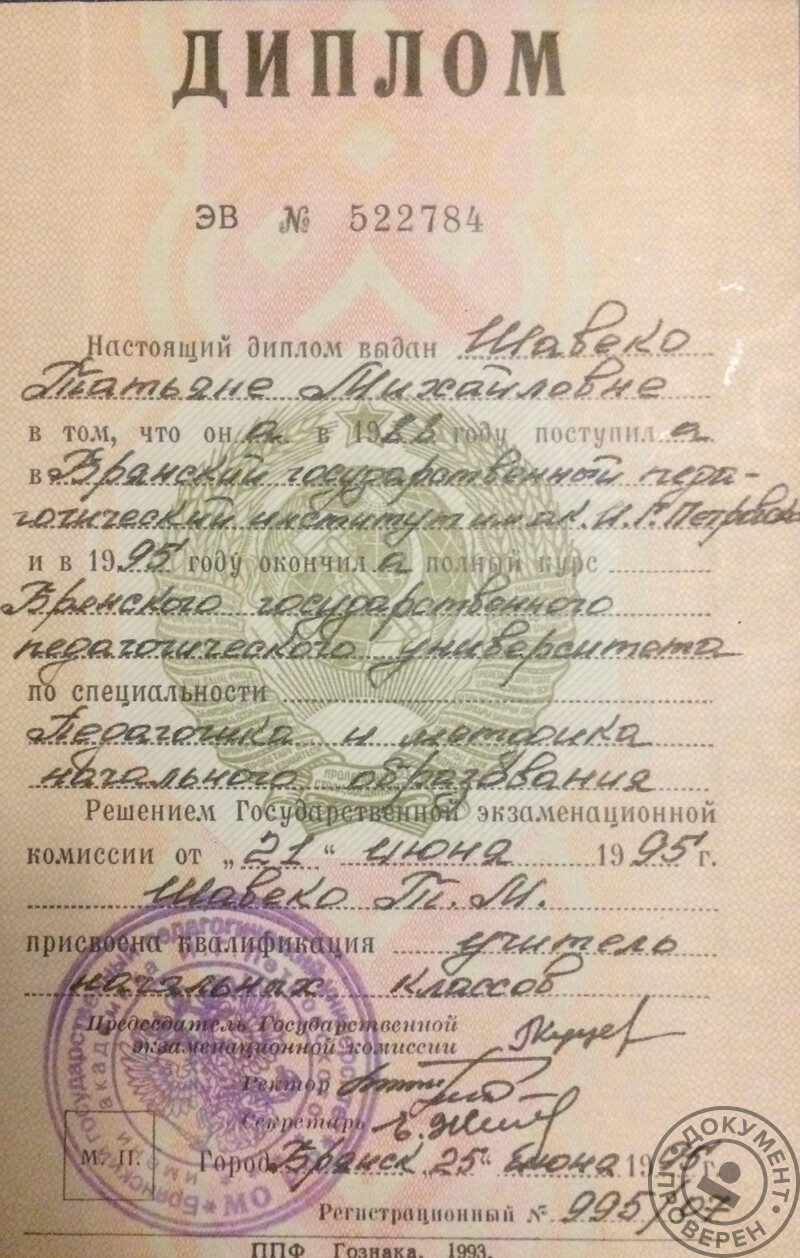 - БГПУ, факультет начального образования, педагогика и методика начального образования (1995 г.).