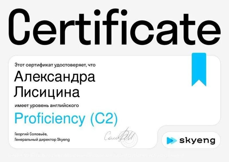 - Подтверждение уровня Английского языка (с 2025 г.).