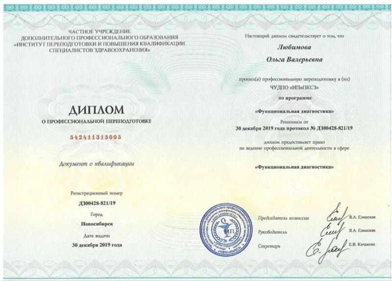 - Частное учреждение дополнительного профессионального образования "Институт переподготовки и повышения квалификации специалистов здравоохранения" (ЧУДПО "ИПиПКСЗ"), 2019 г.