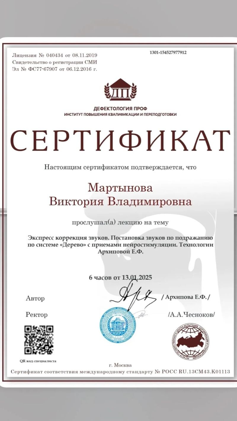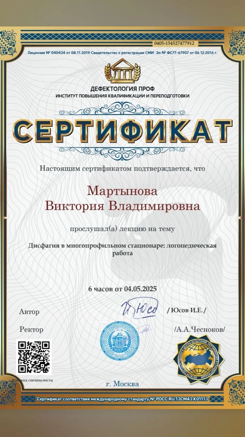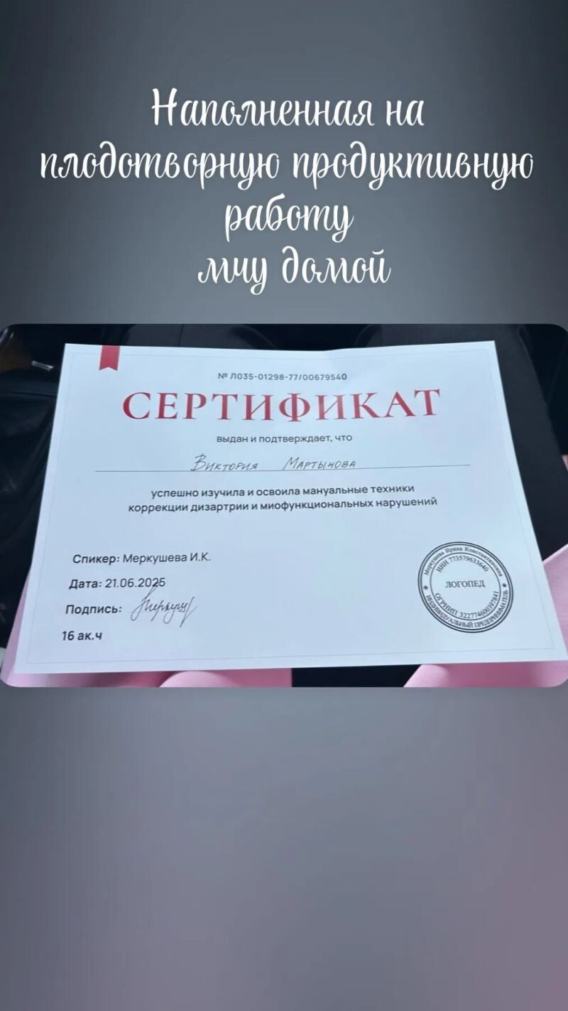 - Мануальные техники коррекции дизартрии и миофункциональных нарушений (с 2025 г.).