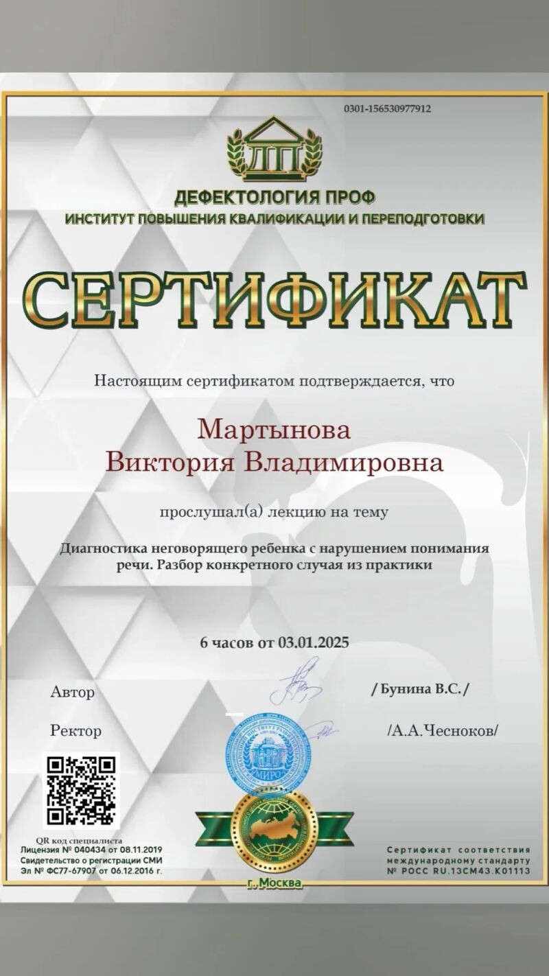 - Диагностика неговорящего ребенка с нарушением понимания речи (с 2025 г.).