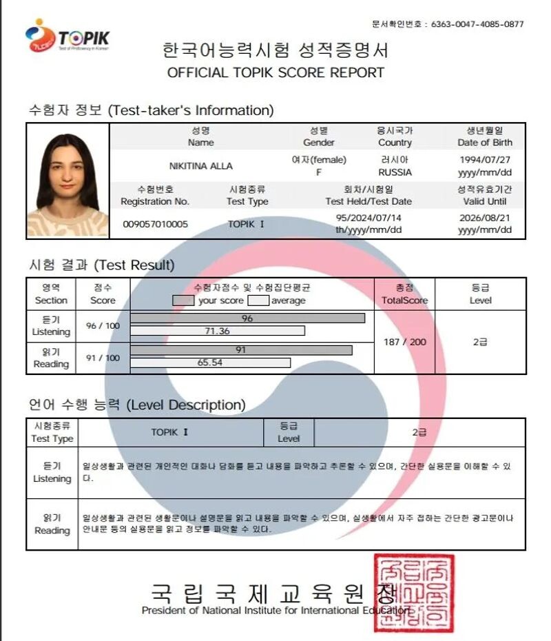 - TOPIK I, 2급 (с 2024 г.).