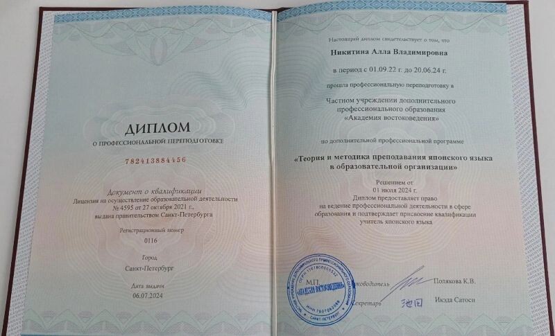 - Преподаватель японского языка — 6 лет.
