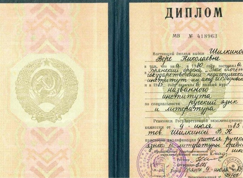 - БГУ им. И.Г. Петровского, филологический факультет, специальность – учитель русского языка и литературы, 1985 г.