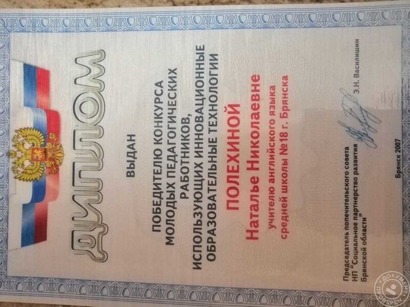 - Грамота победителя конкурса молодых педагогических работников, использующих инновационные образовательные технологии, 2007 г.
