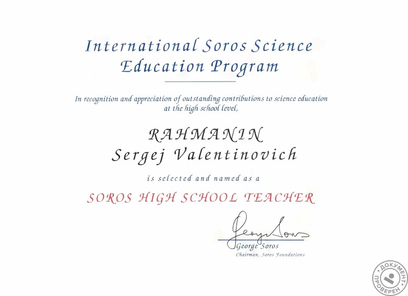 - Soros Foundations, лауреат премии Дж. Сороса по физике, 1996–1998 гг.