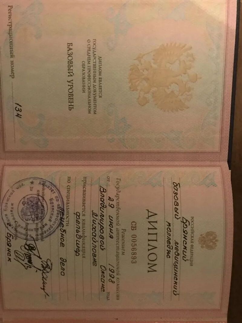 - Брянский медицинский колледж, фельдшер общей практики, 1994–1998 гг.