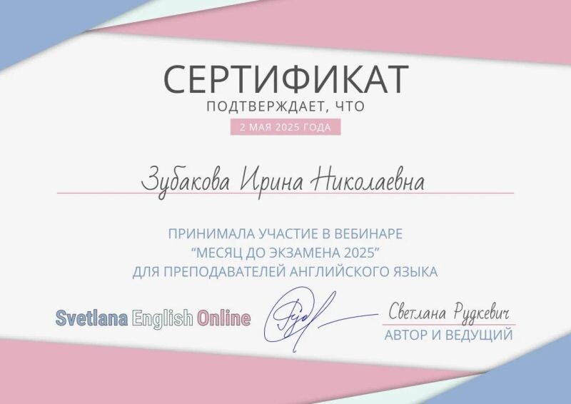 - Светлана Рудкевич, вебинар «Месяц до экзамена 2025» для преподавателей английского языка.