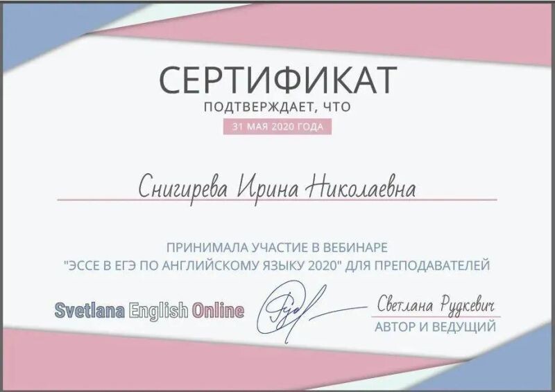 - Светлана Рудкевич, вебинар «Эссе в ЕГЭ по английскому языку в 2020».