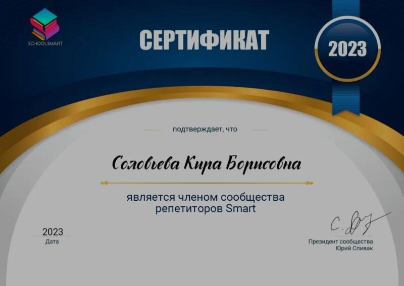 - SchoolSmart, член сообщества репетиторов, 2023 г.
