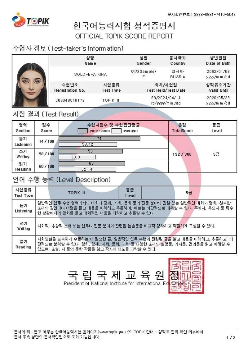 - Международный экзамен TOPIK, уровень 5, 2024 г.