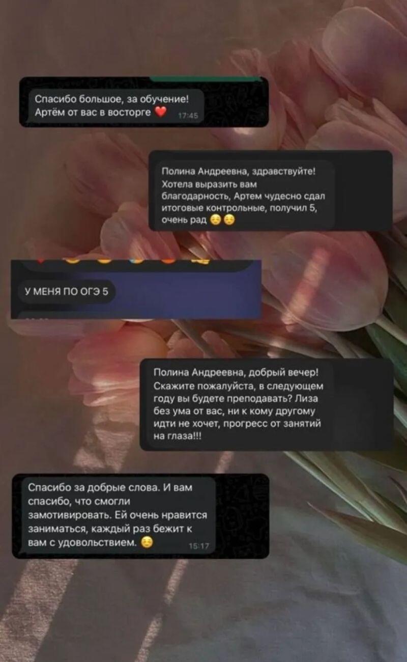 ► Связаться с Тимошенко Полиной Андреевной можно за пару минут. Нажмите на кнопку «Связаться с репетитором» и заполните короткую форму.