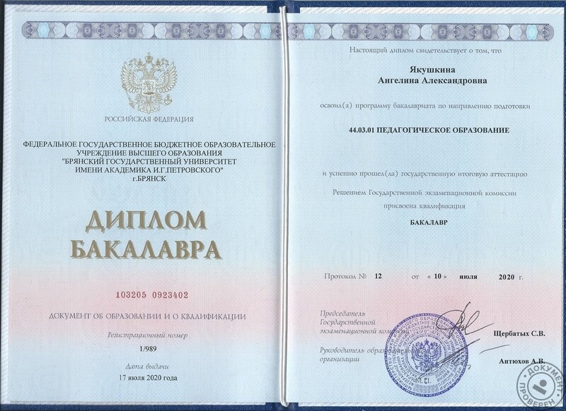 - Брянский государственный университет им. академика И.Г. Петровского, физико-математический факультет, направление «педагогическое образование», магистр, 2020–2023 гг.