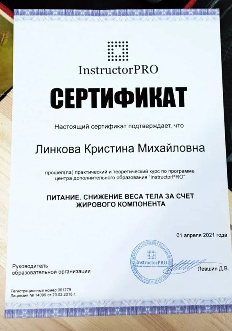 - ЦДО InstructorPro, курс по питанию, 2021 г.