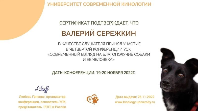 - Университет современной кинологии, четвёртая конференция «Современный взгляд на благополучие собаки и её человека», 2022 г.